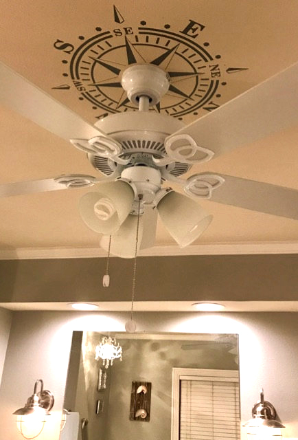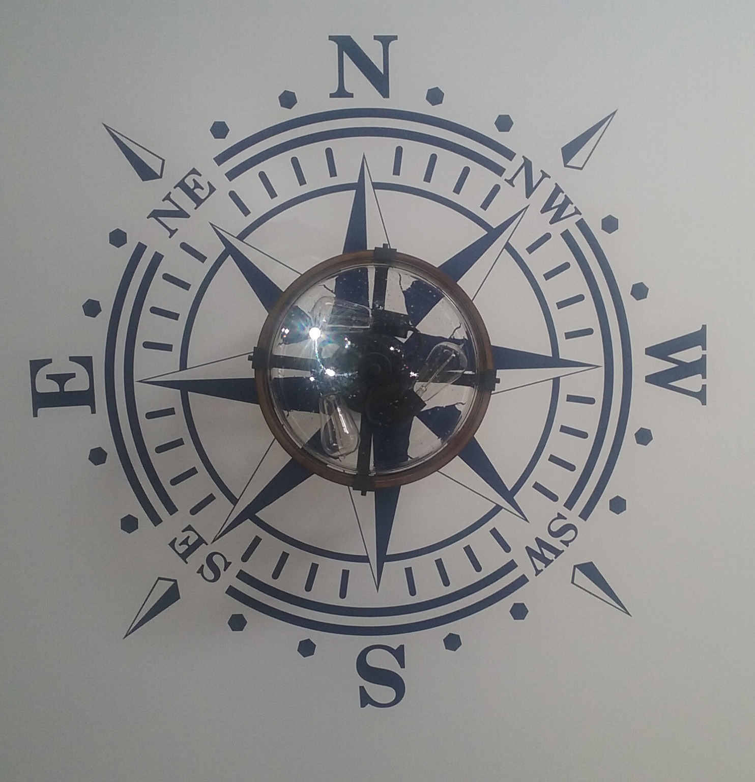 Also, it is important to know that the compass rose ceiling medallion comes in 2 halves sheets (it is divided by the middle) which means you won't have to completely remove the lamp in order to install the decal.