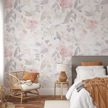PRIM ANNE Wallpaper Pink & Purple Watercolor Flowers